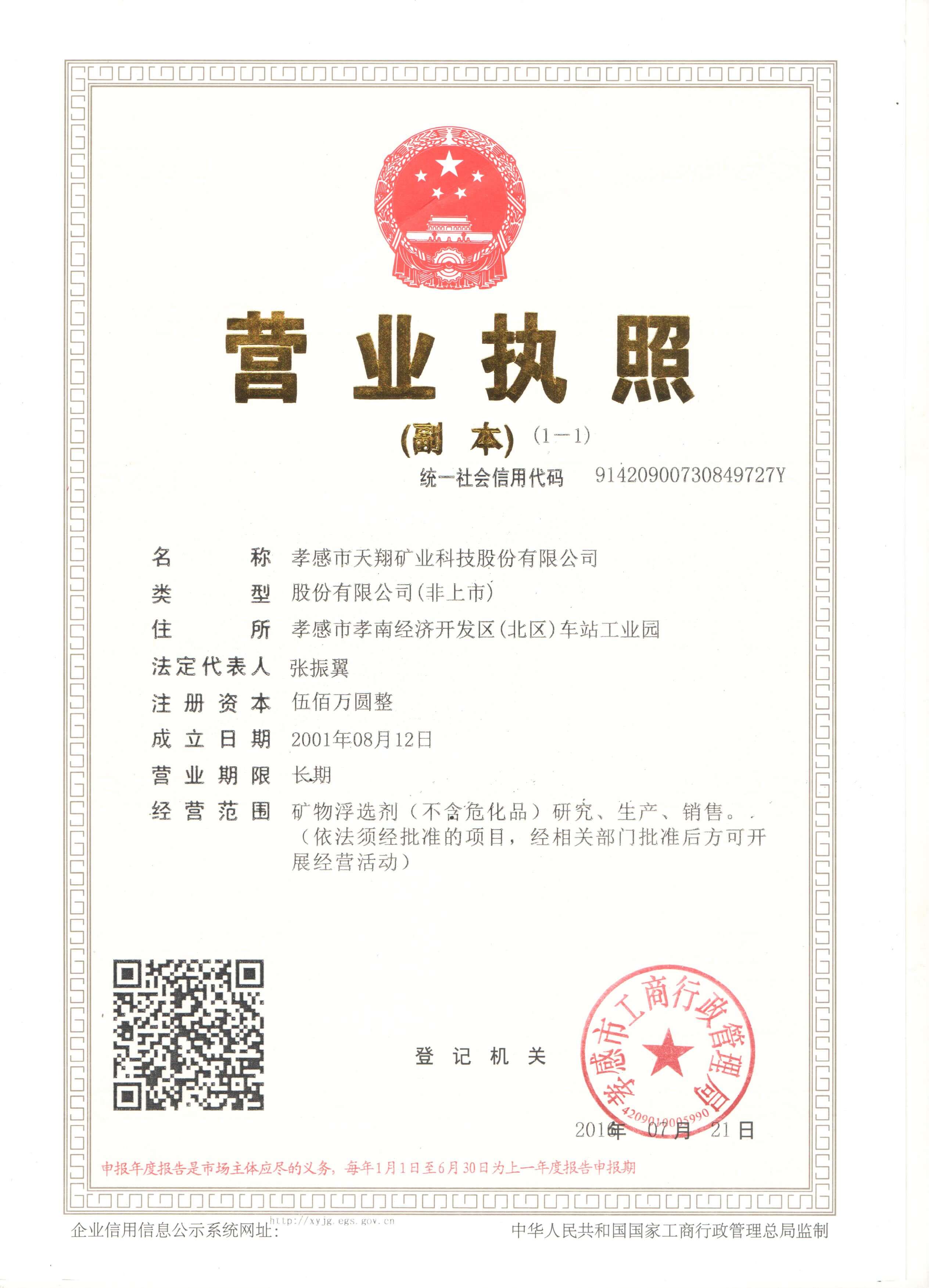 孝感市天翔礦業(yè)科技股份有限公司是一家專(zhuān)業(yè)從事氧化礦浮選藥劑研究開(kāi)發(fā)和生產(chǎn)的企業(yè)。成立于1996年,經(jīng)過(guò)20多年的研發(fā)與生產(chǎn)實(shí)踐,產(chǎn)品覆蓋磷礦、鋰礦、螢石礦、鎢礦、錫礦、鈦鐵礦、鋁土礦、稀土礦等多礦種的浮選藥劑,在業(yè)內享有一定知名度。一份耕耘,一份收獲,多年的積累一定會(huì )產(chǎn)生行業(yè)認可的高端產(chǎn)品。公司將會(huì )提供給礦山最高效、最有競爭力的產(chǎn)品,會(huì )與礦山企業(yè)一道,共同為行業(yè)發(fā)展作出最大的貢獻。